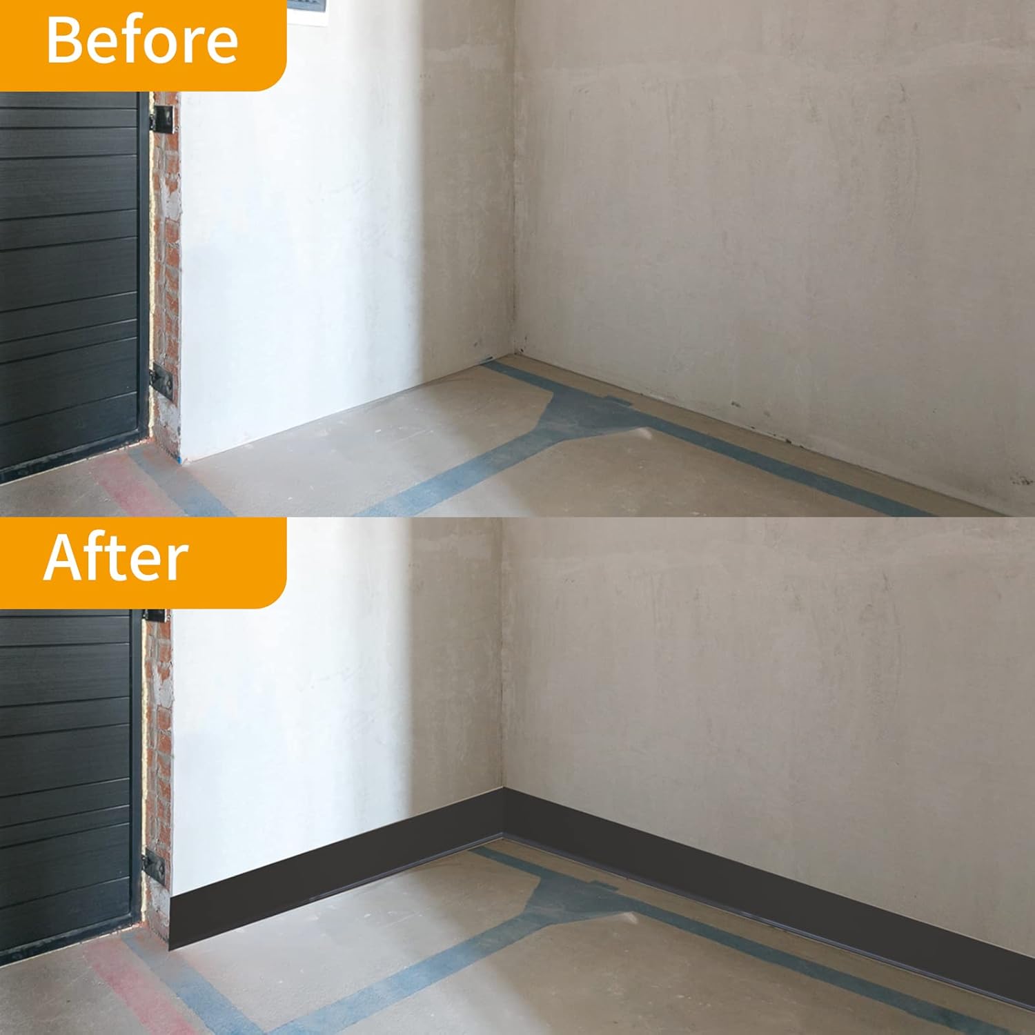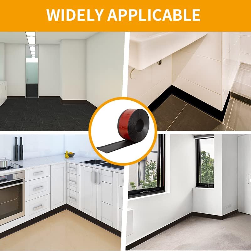 ● WIDELY APPLICABLE: Adhesive floor wall base can stick to almost any smooth surface (tiles, plastic, marble, metal, glass, wood, smooth wall, ext.) Perfect for bathroom, bedroom, living room, kitchen, stairway, hallway, garage, gym, RV, nursery, Office, Hospital, ext.This product has a toe design, which can perfectly cover the gaps between floors and walls. And it is very flexible and can effectively deal with curved walls or uneven ground.