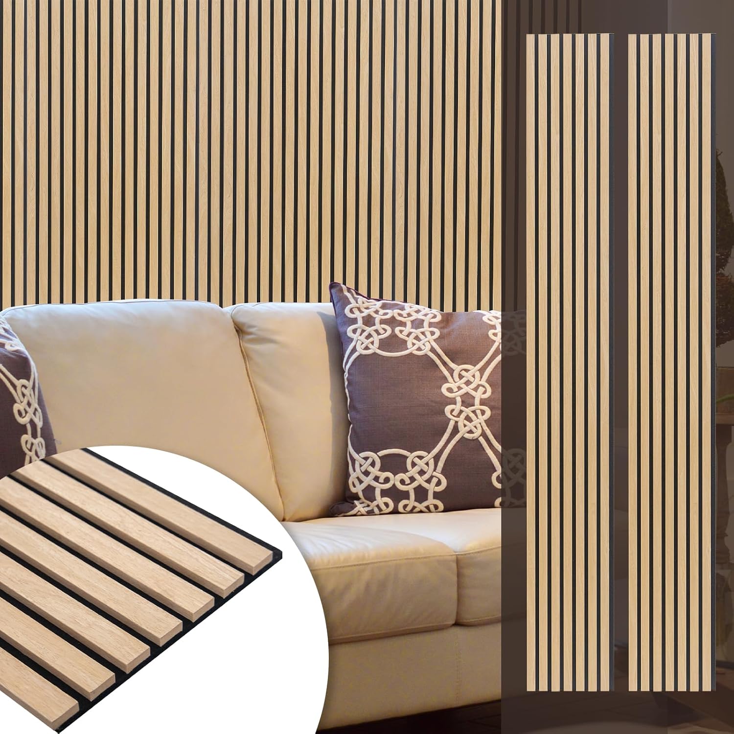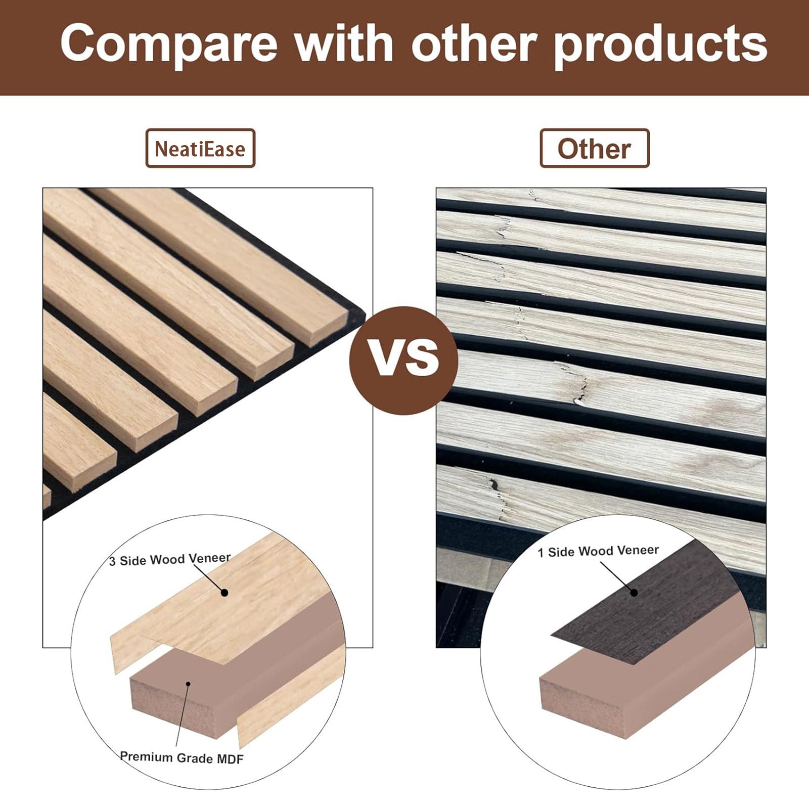 ● Modern and Elegant Design - NeatiEase wood slat wall panel brings an elegant architectural detail to your room. You've seen it in high-end homes and hotels, where a wall with vertical strips of wood plays with light and shadow, giving a room an organic vibe, while reducing echo and improving your acoustics.