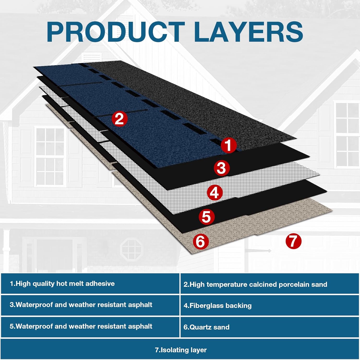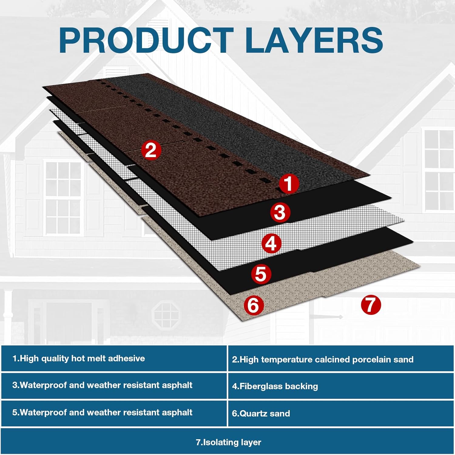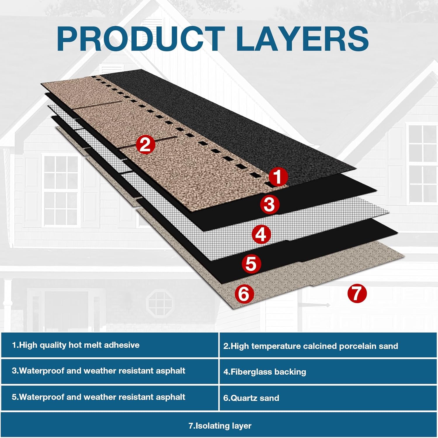 【Easy to Install】 - Unlike some other roofing materials, asphalt shingles are lightweight enough to be installed on virtually any home. The hot melt adhesive on the tiles has strong adhesion, and we also provide installation nails (4 nails per piece). You will not need additional structural support, saving time and money.